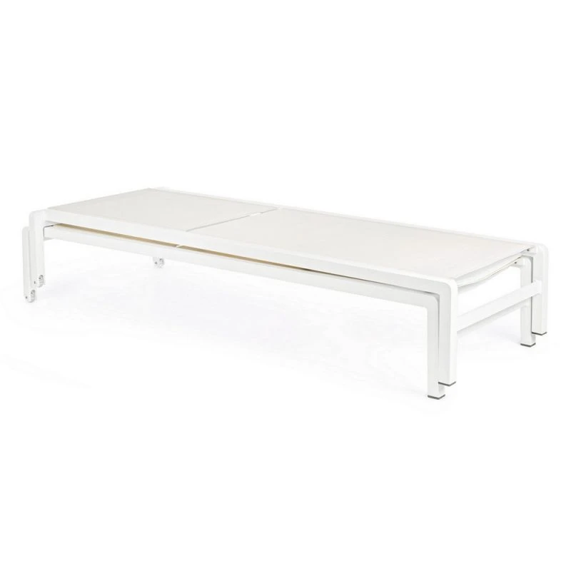 Craquez pour le bain de soleil Konnor de Bizotto. Design avec ses courbes épurées, il est aussi confortable grâce à ses dimensions généreuses (L 195 x l 78 x H 90 cm). Disposant d’un dossier inclinable en 6 positions, le bain de soleil Konnor est également pratique. Avec ses deux roulettes, il se veut mobile et facilement déplaçable. Grâce à sa structure en aluminium et son assise et dossier en textilène, il ne demande que très peu d’entretien. Empilable, vous pouvez aisément stocker vos bains de soleil Konnor. Son look pur vient de ses lignes minimalistes et de son coloris tendre, savant mélange de blanc et de blanc cassé.