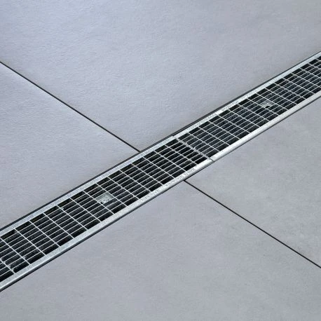 Ce kit est composé du caniveau Premium 1000 x 130 x 150 mm ainsi que d’une grille réalisée avec une maille anti-talon (33 x 11 mm) en acier galvanisé. Cette grille est utilisable dans toutes applications de circulation domestique ou publique. La maille anti-talon suggère une utilisation dans des zones à forte circulation piétonne (ex. centres commerciaux, parkings en silo, espaces publics aménagés).